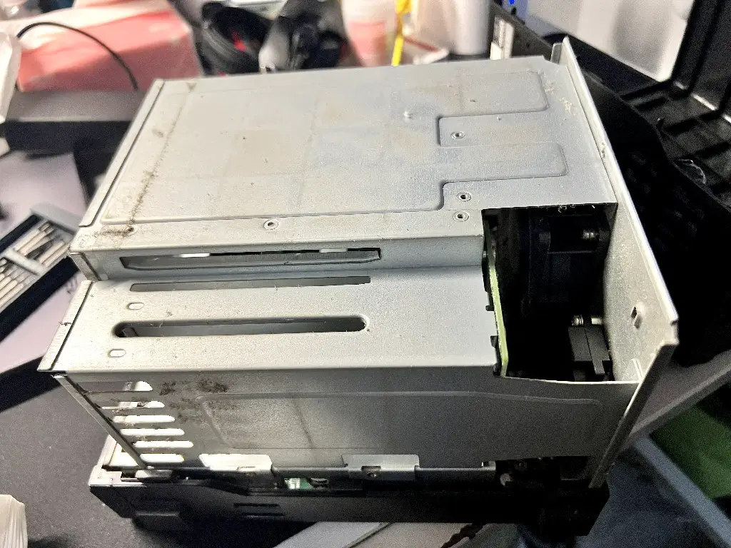 因为二手产品,卖家说是 2020 年购买的,使用了 3 年多,外观上有些灰尘(里面也不少),所以到手我试了一下能正常开机, 装上硬盘后,开机能正常进入系统,也能正常使用后我就开始拆机清理了。