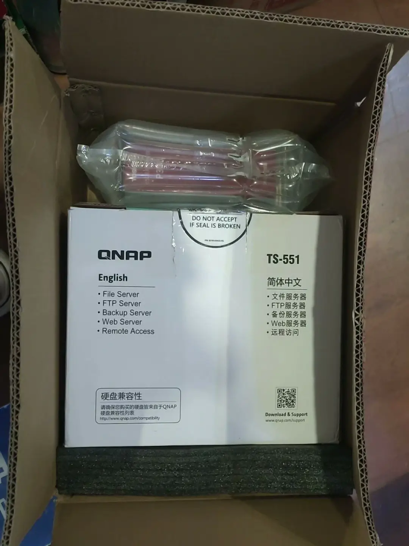 群晖系统用腻了,还是折腾起劲才想买的,实际上没啥需求,之前黑群晖里的数据都通过 Cloud Sync 加密扔百度网盘上了。 后来闲着没事逛咸鱼,发现QNAP 的 TS-551 价格才 500 出头,而且还是箱说全,卖家加到 10 GB 内存,这价格真的蛮香的。