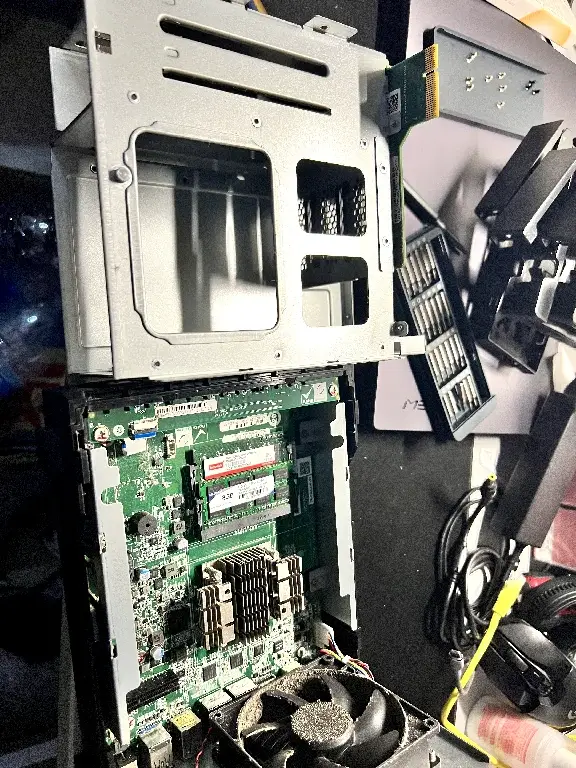 折腾好多机器,就是没有一个正儿八经的主机来运行 NAS 系统,都是用的破烂/只有一块硬盘位。 另外一个原因是: D525 那个主机设计不合理,硬盘和风扇共振太明显了,作为一个轻度神经衰弱患者,实在受不了(为什么鱼缸的水泵声音就没事呢?)。