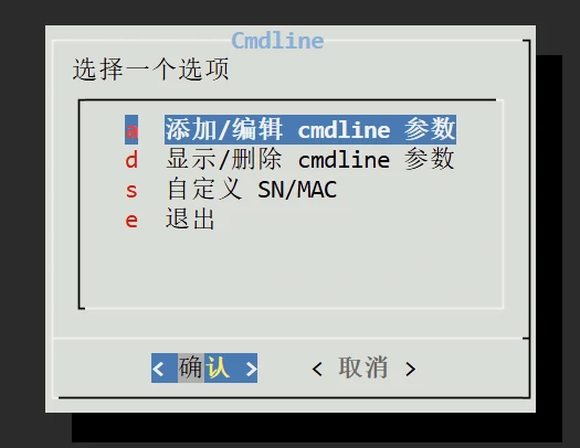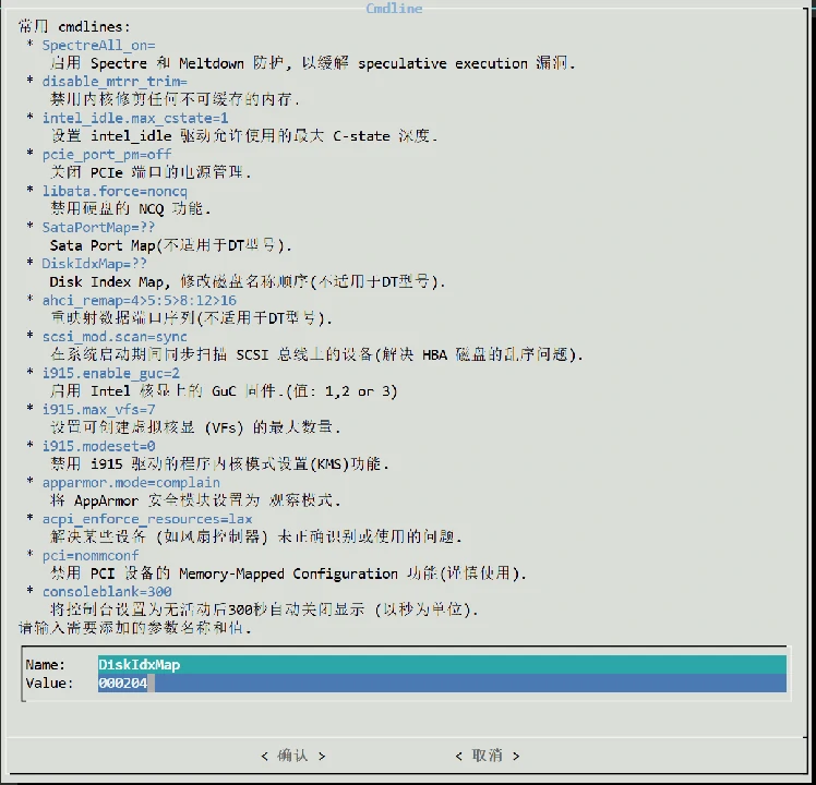 选择 添加/编辑cmdline参数,在接下来的界面输入参数名称与参数值:
