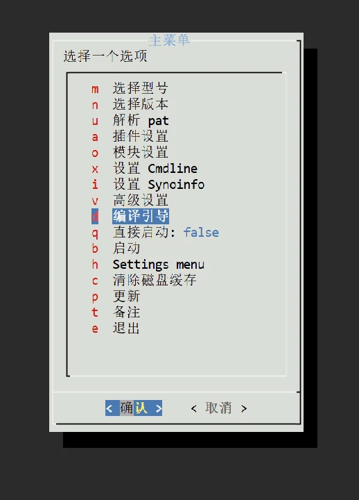 修改完成保存后,返回主菜单,点击 编译引导 选项,等待编译完成后,点击 启动 选项。