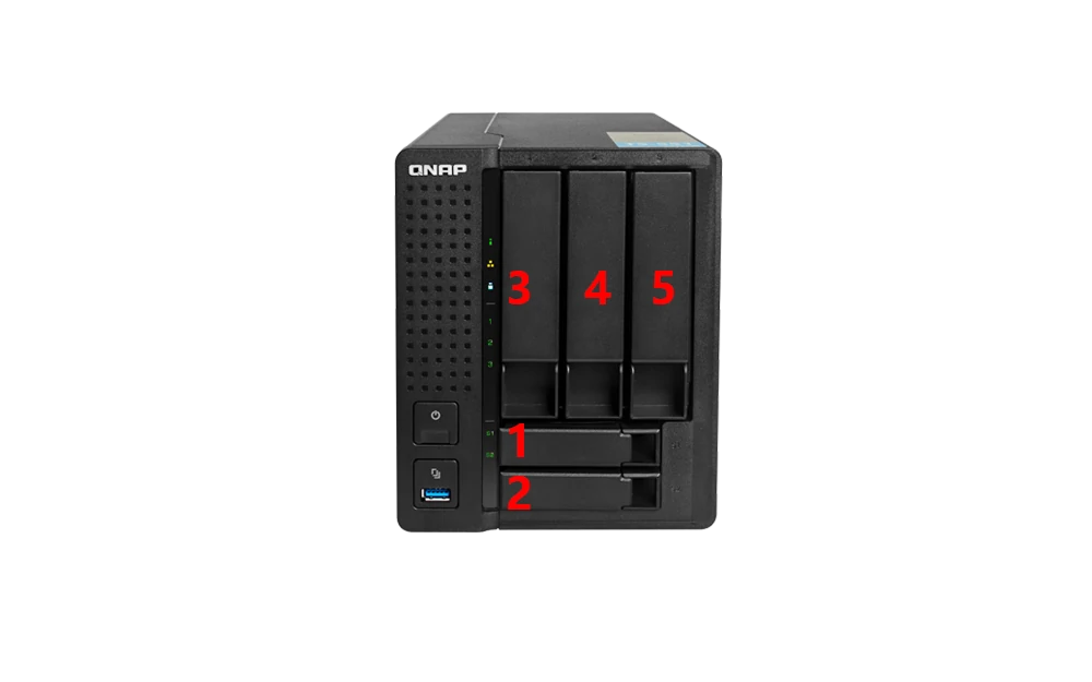 默认情况下,QNAP TS-551 的盘序是从 1 到 5 ,正确排序的。 但是在刷入黑群晖系统,型号选择 DS 1019+ 后,黑群晖系统会将盘序识别为实际的物理硬件地址,实际上为 00,01,02,03,15。 这会导致在黑群晖系统中,从左到右数第三个 3.5寸盘位(物理地址 15)会被识别为第 15 个盘。