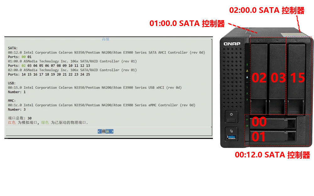 从上图我们可以分析出来,QNAP TS-551 的 SATA 控制器有三个,经过我的测试,